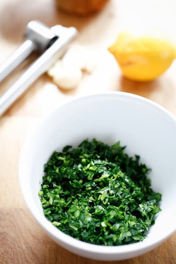 Italian parsley is the base of gremolata…. but sometimes I’ll add fresh mint, basil or even cilantro.